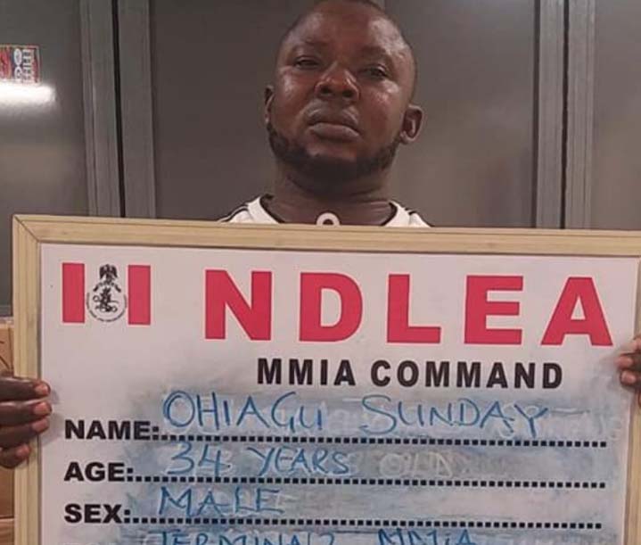 According to NDLEA spokesman Femi Babafemi, the cleaner identified as Ohiagu Sunday, was arrested last week following a lead from a passenger, Obinna Jacob Osita who was on his way to Dubai, but was arrested after cannabis sativa weighing 4.25kg concealed in cassava product, gari and crayfish was found in his possession.