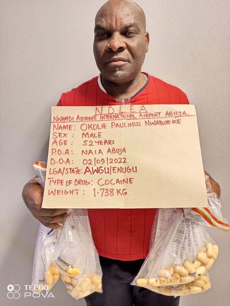 Nigeria Drug Law Enforcement Agency has arrested a 53-year-old man at the Nnamdi Azikwe Airport in Enugu.