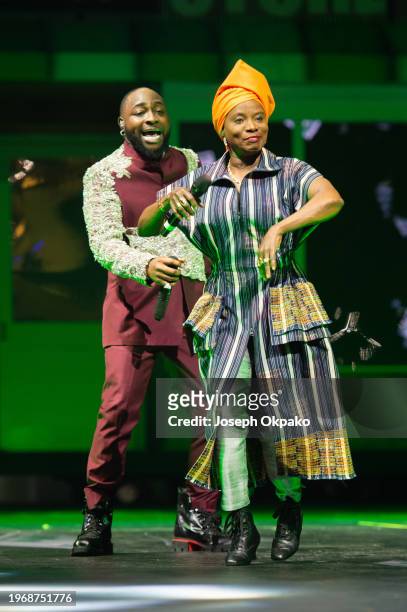 Angelique Kidjo and Davido perform at The O2 Arena on January 28, 2024 in London, England.