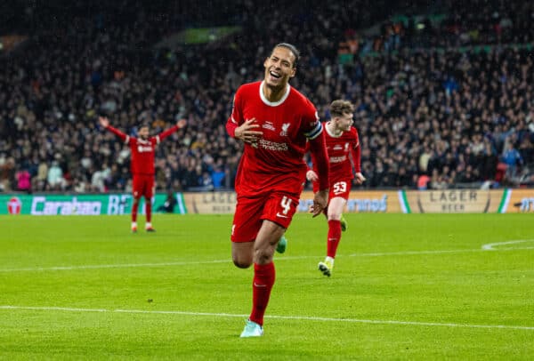 ‘All the young boys on the pitch. It’s incredible. So proud of the team. Intense game for both sides. They had chances, we had chances. Amazing, first trophy as a Liverpool captain. Let’s enjoy it.’