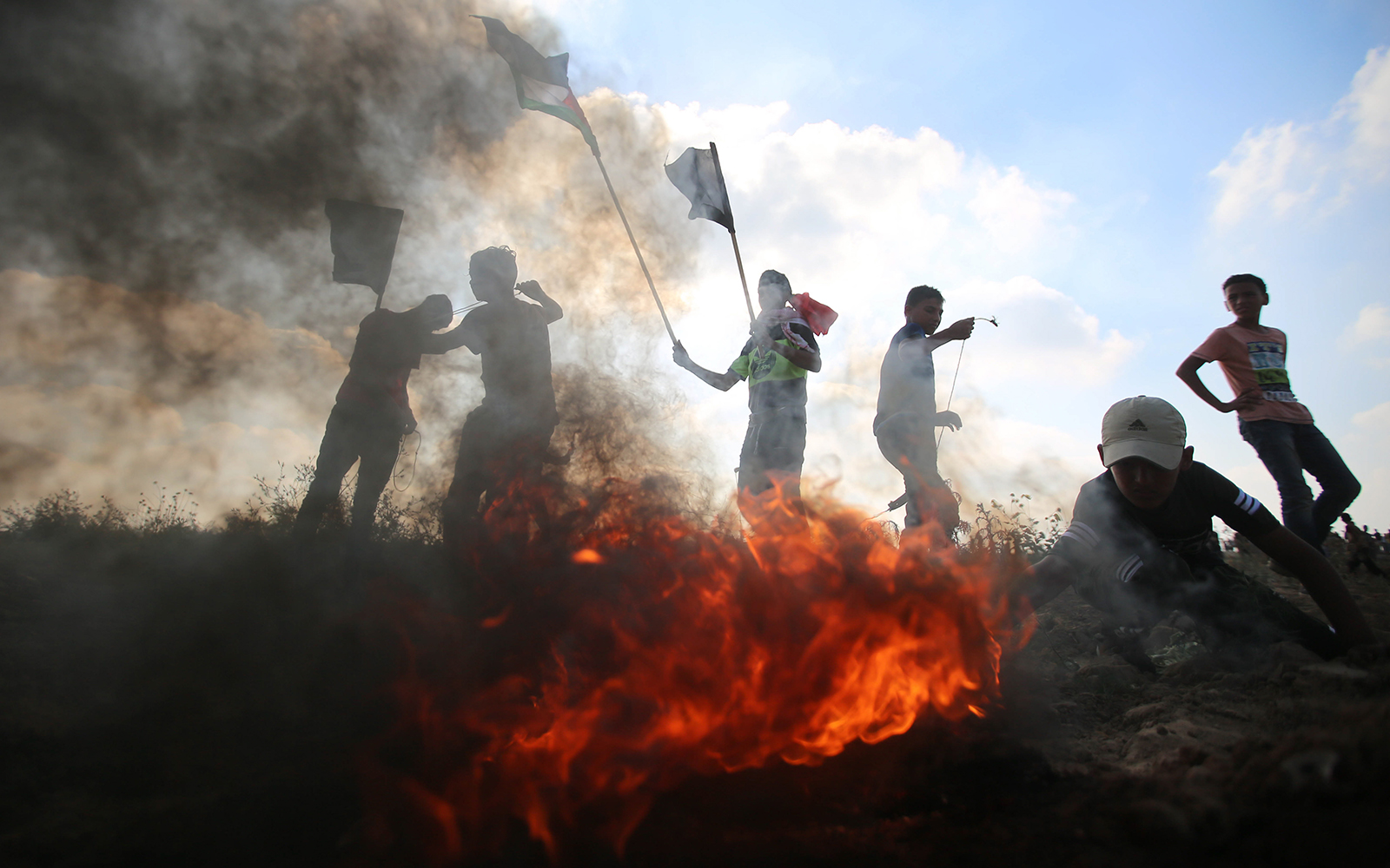 Footage released by the Palestinian Red Crescent Society showed chaotic night-time scenes of paramedics in ambulances racing to the fiery attack site and evacuating the wounded, including children.