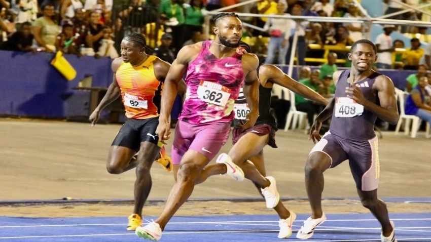 Two-time World Championships finalist Oblique Seville was second in 9.82, while World Indoor 60m bronze medallist Ackeem Blake finished third in 9.92.