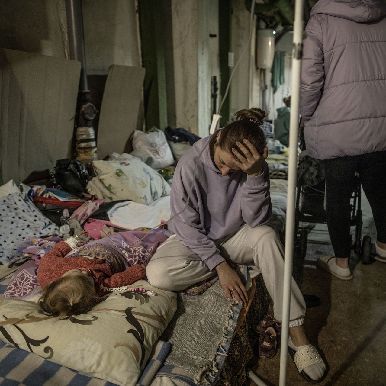 People caught out on the street took refuge underground in the nearby Lukianivska subway station.