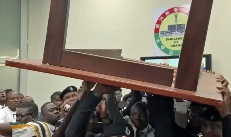 Ghana’s newly inaugurated parliament members sent furniture flying, pushed and shoved late Thursday night, as they bantered over the list of ministerial nominees sent in by President John Mahama.