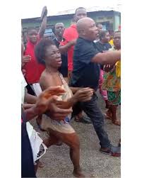 Agbarho community members threatening to lynch a woman accused of stealing a child.