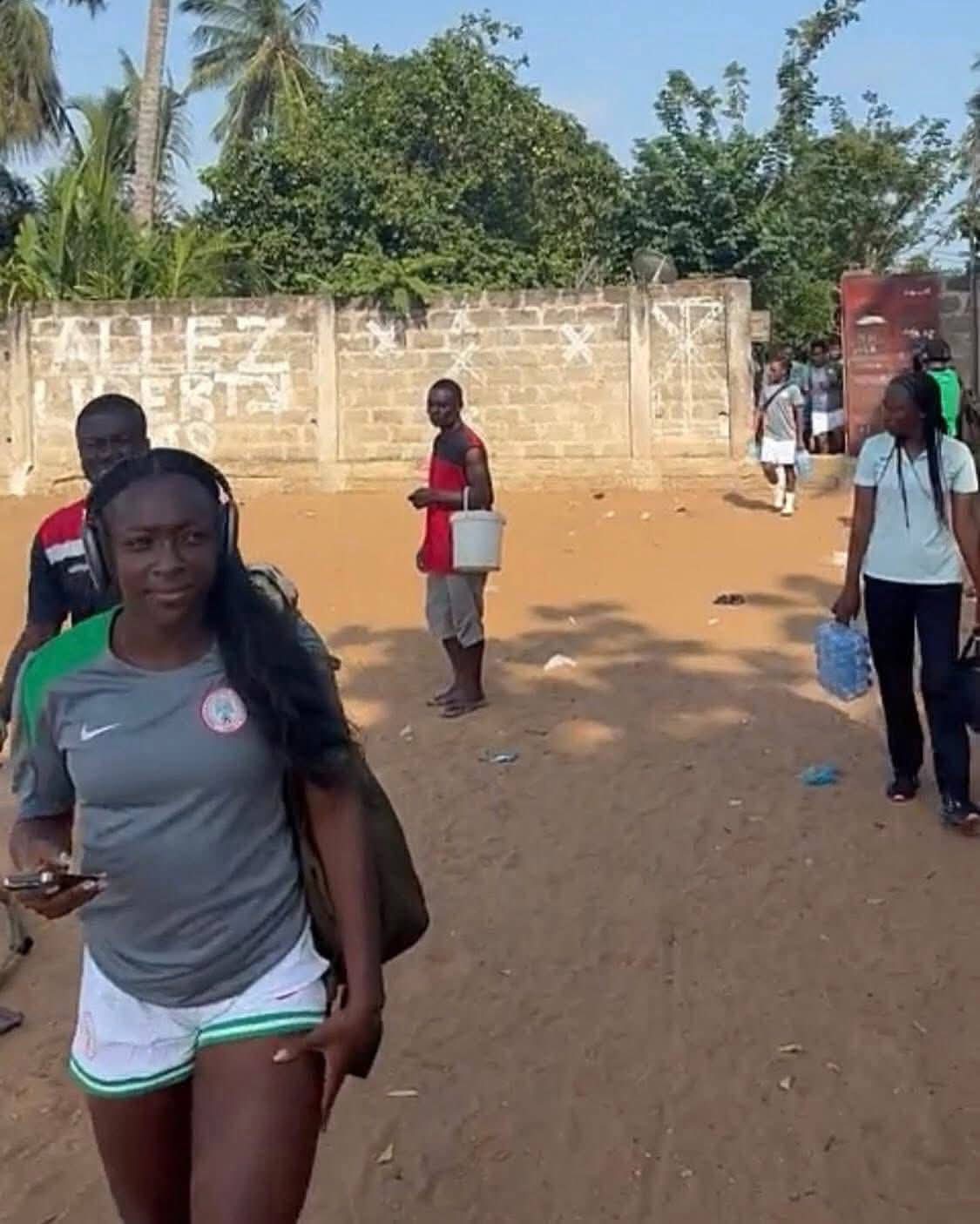 The team arrived in Lome on Wednesday and they were lodged in a hotel situated in a run down area of the Togolese capital. The girls were seen in videos walking through ghettos to get the training ground.